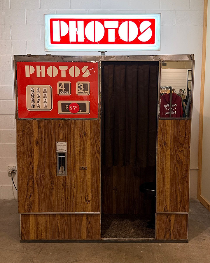 Thanks to Bryant for the news on this booth, marking the first analog booth in San Diego in some years (R.I.P. the booths at MOPA). As he notes, "The photobooth opened yesterday Oct 2nd! [It's] inside the store Day to Day Collective - they sell vintage clothing there by many incredible vendors. Open every day from 11AM-7PM, Model 14 converted to Model 17, $5 per photostrip (card / tap to pay) - no cash. All Ages, anyone can come in to use the photobooth. It’s also pet friendly!" Contributed by Bryant |