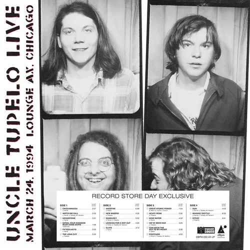 A live album from a 1994 show (just a month and a few days before Uncle Tupelo broke up) at Lounge Ax in Chicago. According to the liner notes, the blown-up photostrip on the cover is from the booth at said location, I can only assume taken on that very night. Lounge Ax closed in 2000, five years prior to this website's beginning, so we don't have any record of that booth.