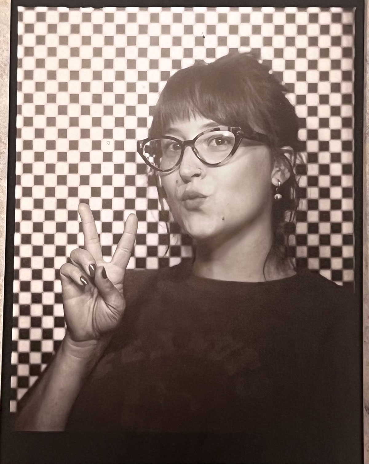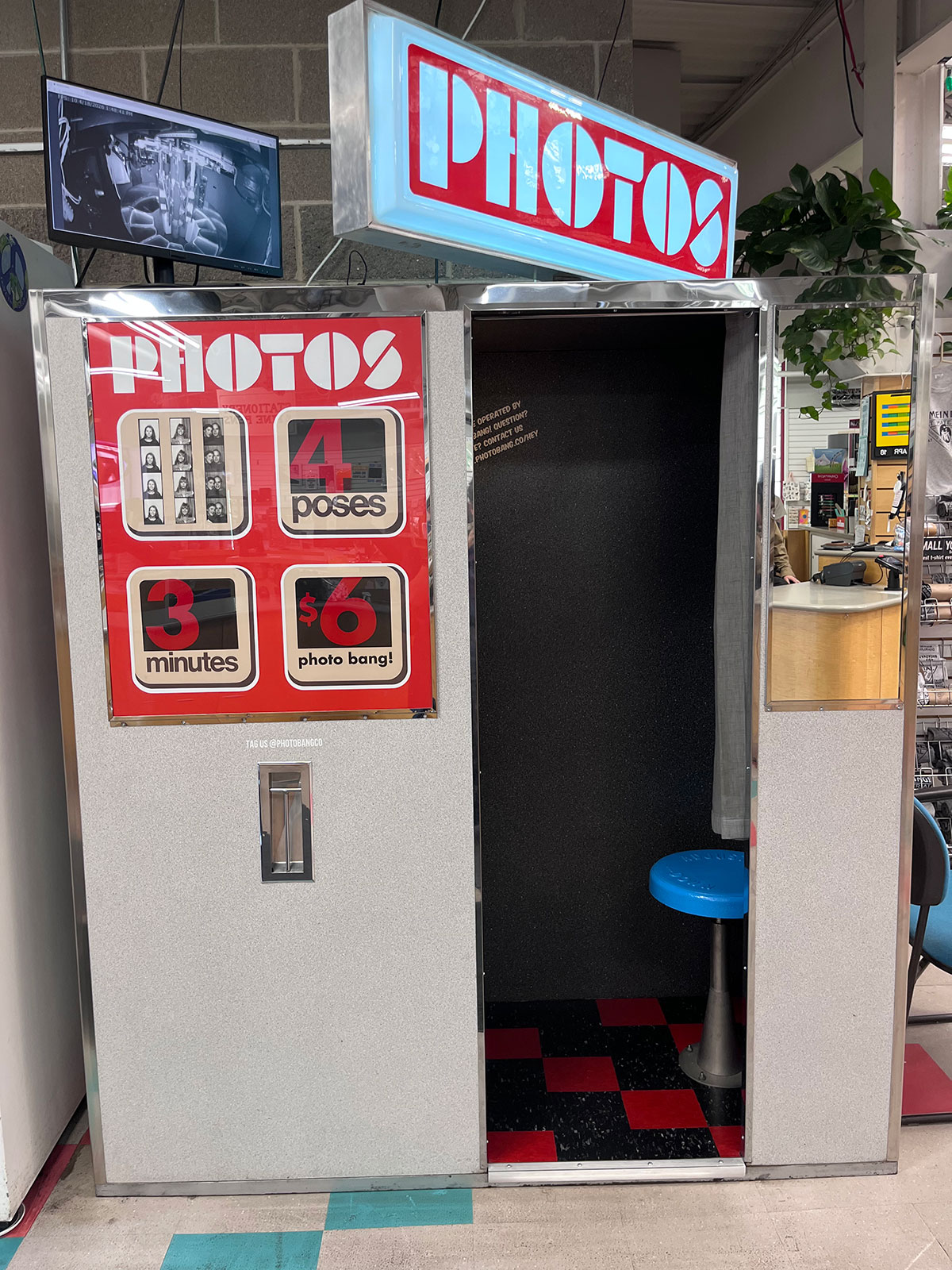 Thanks to Eve for letting us know about Photo Bang's new location at the legendary H.R. Meininger Art Materials shop on Broadway in Denver. "This booth has one checkered background option, and is located right in the entry way of the store. Photos turned out great!" Contributed by Eve | |