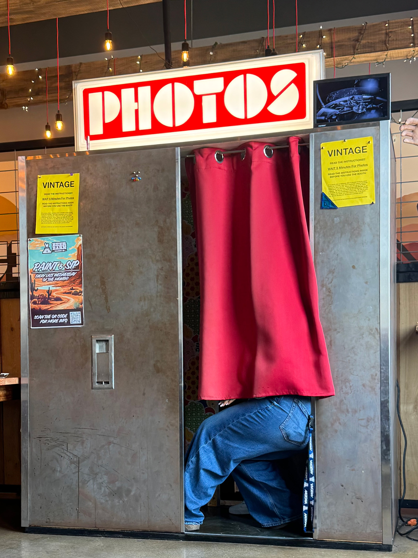 Thanks to Hallie for another Gilbert, Arizona booth update: the booth at Beer Barn is "across the street from the booth at Barnone. Both booths are maintained by @FunkyPhotoBoothAZ on Instagram, as well as the booth at Joe's Real BBQ. Photos are $5 a strip and the machine takes cash or card." Contributed by Hallie | |
