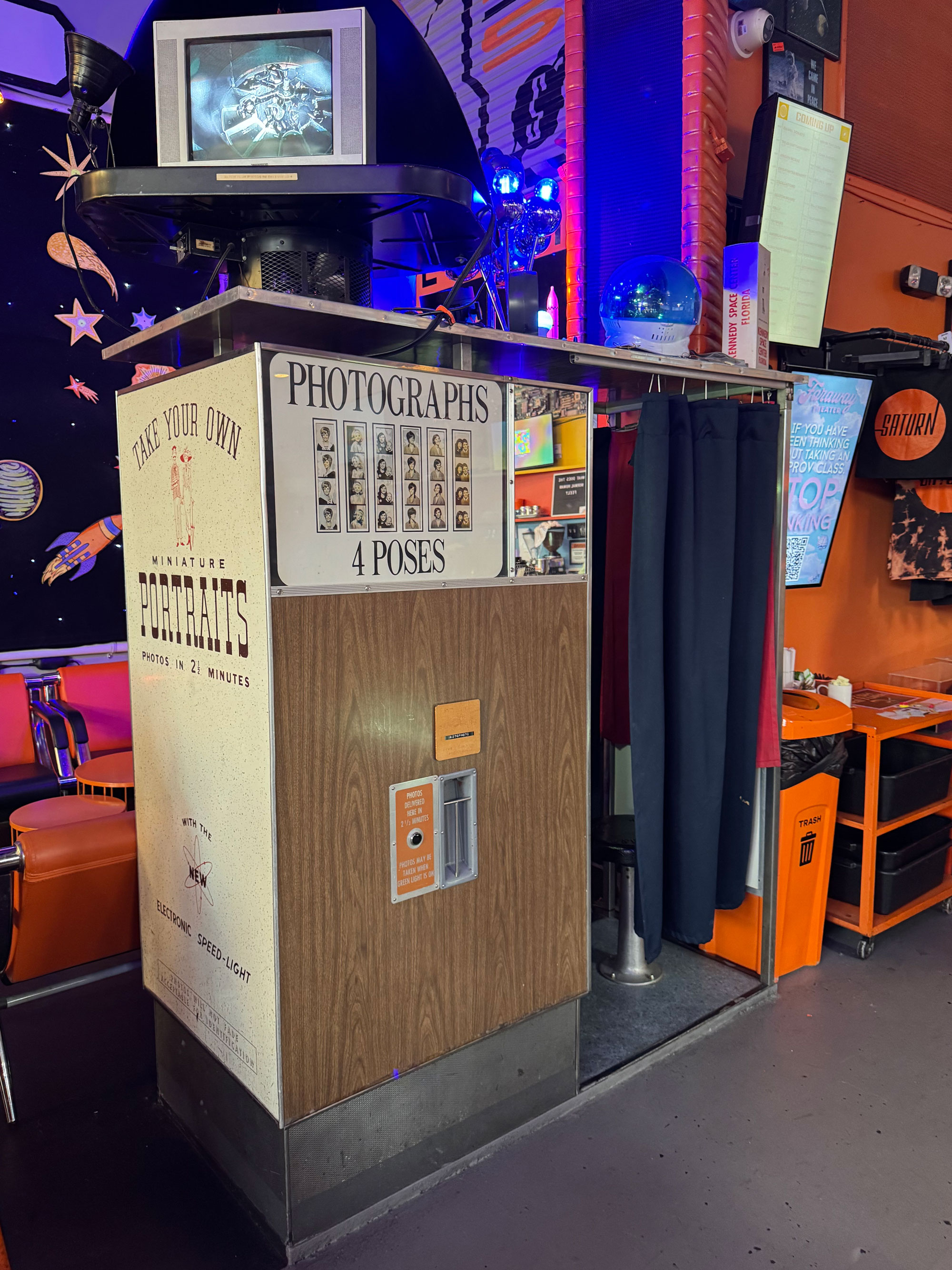 Annie reports: "I was very pleasantly surprised to discover this photobooth in Birmingham at Saturn, a charming concert venue and bar, when visiting family. The photos are $5 with cash and $7 with card." Contributed by Annie | |